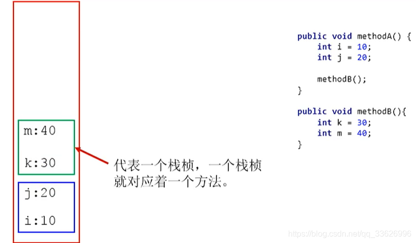 如果在该方法中调用了其他方法,对应的新的栈帧会被创建出来,放在栈的顶端,成为新的当前帧。