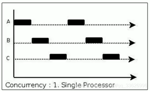 - 并发不是真正意义上的“同时进行”,只是 CPU 把一个时间段划分成几个时间片段(时间区间),然后在这几个时间区间之间来回切换。由于 CPU 处理的速度非常快,只要时间间隔处理得当,即可让用户感觉是多个应用程序同时在进行。